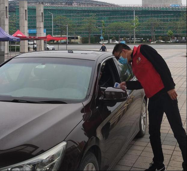 “请您出示通行证、粤康码、行程卡。”“请您配合测一下体温。”“请佩戴好口罩。”……早晨7点至9点是教职工车辆进校的高峰时段,党员们身着志愿者服装,对所有入校人员严格进行身份核验、体温检测、粤康码和行程卡查看,为校园疫情防控工作贡献力量,以实际行动为党旗增辉、为党徽添彩。