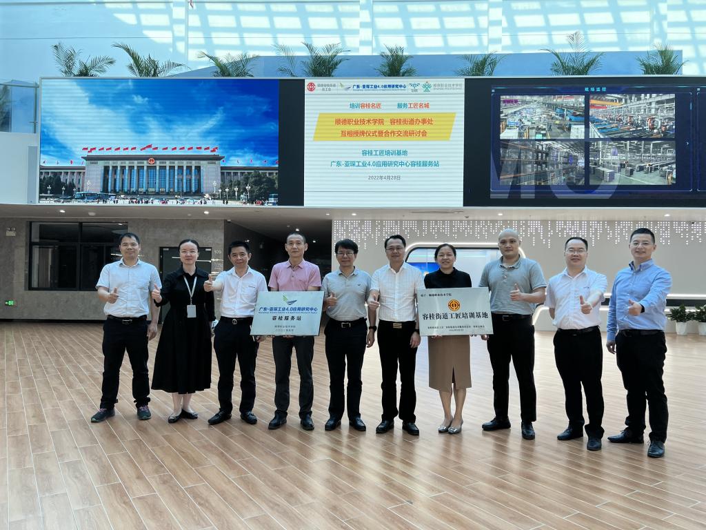 4月28日,永利官网与顺德区容桂街道在广东-亚琛工业4.0应用研究中心(以下简称“亚琛中心”)共同举办授牌仪式,容桂街道向永利官网智能制造学院授予“容桂街道工匠培训基地”牌匾,亚琛中心向容桂街道授予“广东-亚琛工业4.0应用研究中心容桂服务站”牌匾。随后,双方及容桂高新技术企业代表就如何培训容桂名匠、服务工匠名城进行交流研讨,后续双方将根据培训基地和服务站的职能开展深入而实际的合作。