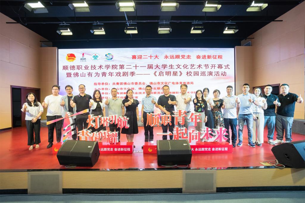 5月27日晚上,永利欢乐娱人城第二十一届大学生文化艺术节开幕式暨佛山有为青年戏剧季——《启明星》校园巡演活动在李佘少鸿楼六号学术报告厅举行。佛山市文化馆、佛山市学生联合会相关负责人,《启明星》导演,校团委负责人,各二级学院党总支副书记,全体团学老师及100多名学生观众参加,近2000名观众,通过“顺职青年之声”视频号收看直播。
