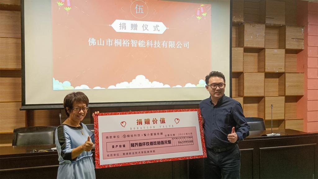 会上举行了捐赠仪式,佛山市桐裕智能科技有限公司向商学院捐赠电商教学设备,启动新一轮产教融合校企合作进程。