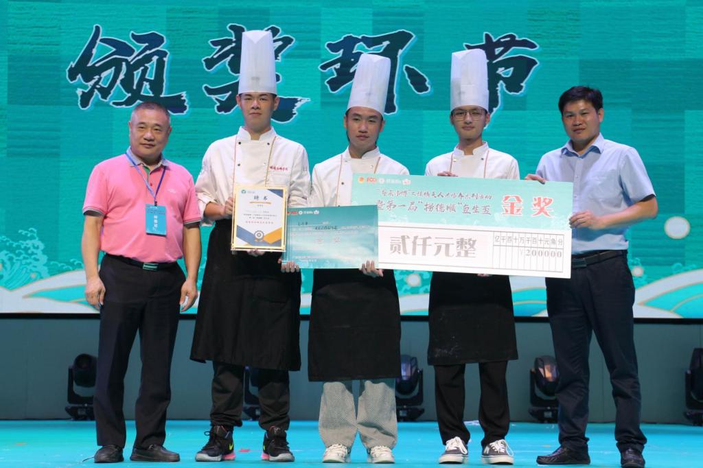 比赛中,18支学生团队一字排开,去皮、剔骨、起红肉、切片、切丝、摆盘,一气呵成。专业评委们从鱼肉的光泽质感、摆盘造型、刀工、配料、制作卫生等方面进行打分,6支团队成功突围。经过20分钟的激烈比拼,6道色香味俱全的鱼生盛宴呈现在观众面前。最终,参赛选手范镔镔及他的“老友记掂到飞起”团队成员获得金奖,陈水焕及他的“捞世界”团队成员获得银奖,王东碣及他的“鱼你再依起”团队成员获得铜奖。除了获得奖金,这三组选手还都获得了捞德顺品牌店刺身师傅的工作聘书。