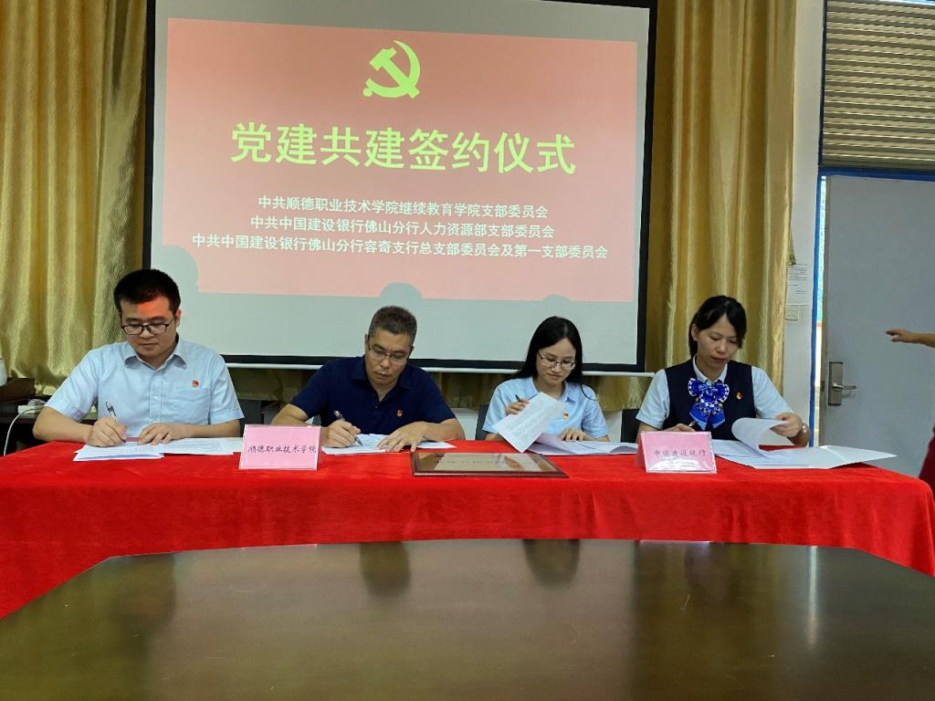 为创新党支部工作机制,激发党支部工作活力,实现银校“联学联建联动、共融共建共享”,提升社区服务和基层治理水平,7月28日下午,中共永利欢乐娱人城继续教育学院党支部与中共中国建设银行佛山分行人力资源部党支部、容奇支行党总支、容奇支行第一党支部开展“党建引领、千院共建”和“劳动者港湾共建”签约仪式,同时开展党史联学共建活动和劳动者港湾宣传活动。