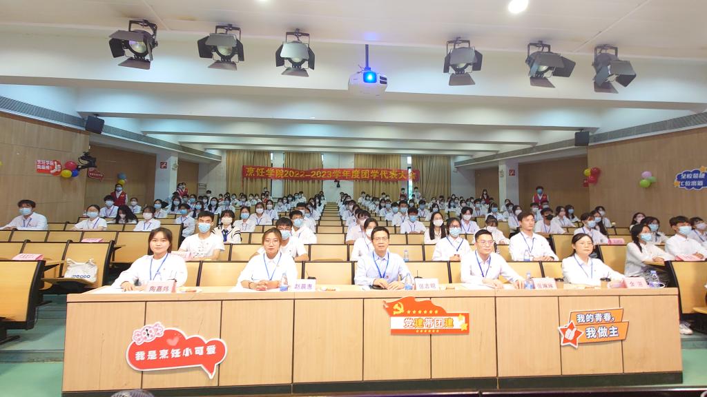 11月10日下午,烹饪学院“学习二十大 永远跟党走”主题党课暨2022-2023学年度团学代表大会在五号报告厅召开。会议审议通过上一届团学组织工作报告,选举产生新一任团学组织主要负责人。张志明向师生讲授《争做有理想、敢担当、能吃苦、肯奋斗的新时代好青年》主题党课。他指出,青年强,则国家强,当代中国青年生逢其时,施展才干的舞台无比广阔,实现梦想的前景无比光明。我们生逢盛世,肩负重任,必须再接再厉,凭着勤奋上进的拼搏精神,辛苦耕耘的顽强意志,在各自的年级和班级再接再厉,勇攀高峰,争取获得更加优异的成绩。广大团员青年要深入学习贯彻党的二十大精神,牢记习近平总书记嘱托,在党的领导下,奋进新征程,担当新使命。