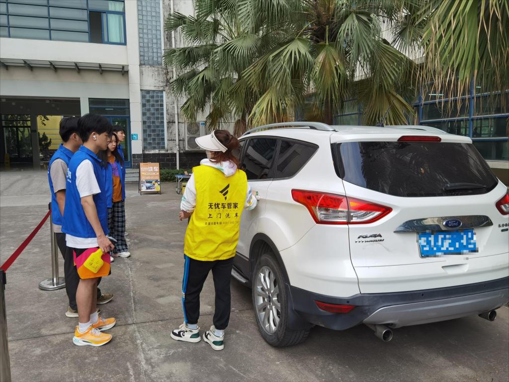 在服务过程中,教师结合不同服务车型,就故障排险、安全检测、维修保养等问题为学生进行讲解。教师与学生共同对车辆进行细致的检查,并给出保养建议。校外合作企业无忧车管家免费提供车辆干洗服务。