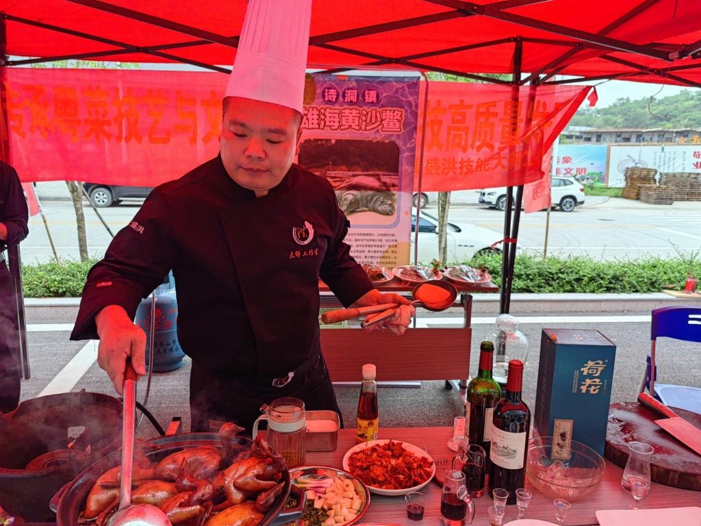 现场还进行了直播带货,中国烹饪名厨、烹饪学院教师麦盛洪以“怀集食材•顺德味道”为主题展示厨艺,创作的甘香豉酒鸽、避风塘黄沙鳖、豉香切粉等菜式受到现场领导嘉宾的一致好评。