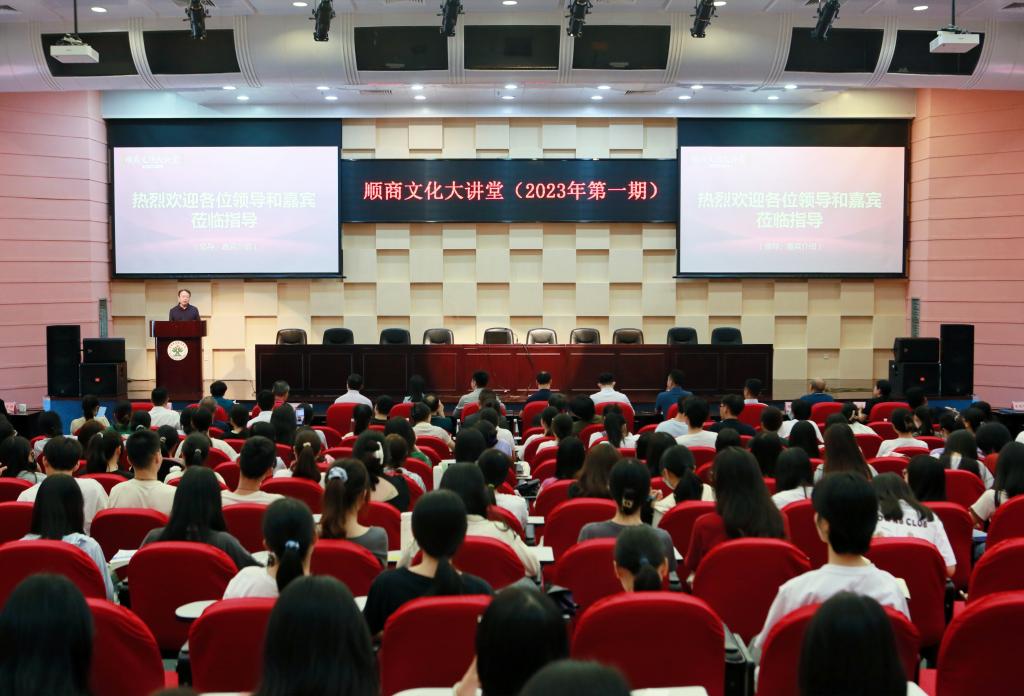 4月23日,2023年第一期顺商文化大讲堂在一号学术报告厅举办,邀请顺商发展研究会副会长、广东宝丽雅实业发展有限公司董事长叶中平作《顺商——植根这片土地的果实》专题讲座。
