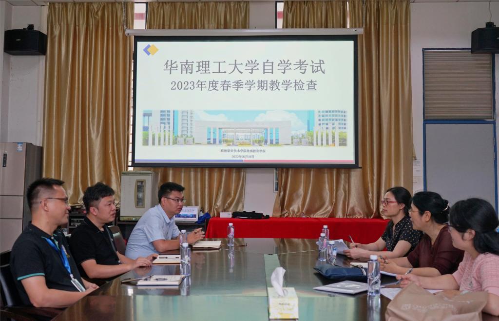 检查包括教学情况汇报、教学研讨交流、学生座谈、督导听课等环节。谢华丰介绍了永利官网自考办学的历史和教学管理情况,汇报了教学教务管理、考试管理、教学中存在的主要问题和工作思路。双方就自考过程性改革的发展方向、华南理工大学自学考试教务教学平台使用、统考课程教学和应试方法等进行交流探讨。