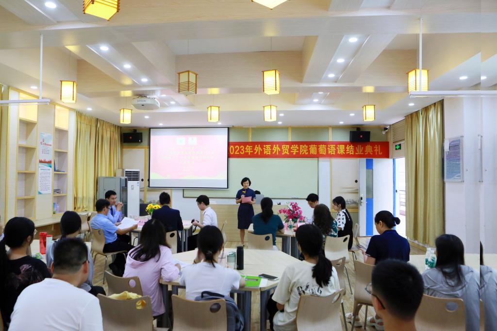外语外贸学院负责人对葡萄牙语项目进行了总结,表示期望扩展与澳门大学的合作领域,提升合作质量与深度。外语外贸学院学生代表用中葡双语致辞,对澳门大学与永利官网教师表达感谢。