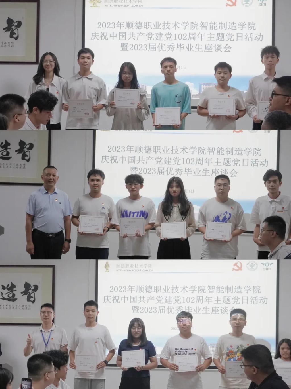 7月1日下午,智能制造学院在信息中心副楼3B-202会议室举行庆祝中国共产党成立102周年主题党日活动暨2023届优秀毕业生座谈会。智能制造学院党总支书记饶喜明、学工办公室副主任苏雄锋、党总支委员林英贤、学生一党支部书记张佳娜、学生二党支部书记陈祺洺,全体毕业班辅导员以及来自各专业的20名优秀毕业生代表、40名在校生代表参加活动。
