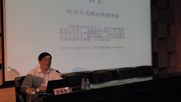 5月8日日晚,广东工业大学党委委员、办公室主任陈贻新教授为同学们主讲第四讲——《保持党的纯洁性,坚定跟党走的信念》。陈教授从宏观的视野上,运用大量生动的事例,为同学们分析了党的发展史、保持党的纯洁性对中国在今后发展的重要性,教育大学生要立大志,做到爱国,树立起为国家的发展而努力学习的信念。