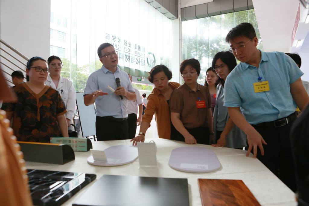 轻化与材料学院副院长刘锋向全国人大代表介绍了学院在产教融合、科教融汇、产教互促国际产能合作等方面的特色,以及培养新材料创新型技能技术人才,为粤港澳大湾区社会经济高质量发展提供人才和技术支持的做法。