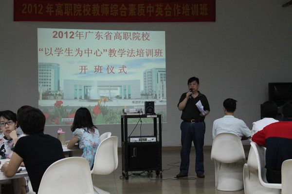 5月12日上午,永利官网举行了“2012年高职院校综合素质中英合作培训班”开班仪式。英国哈德斯菲尔德大学的马丁博士、广州技术师范学院师资培训中心的王川主任及40名学员参加了仪式。