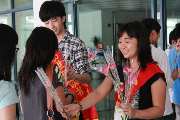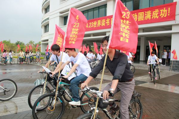 4月23日世界读书日当天,在图书馆一楼开展的“赠人玫瑰,手留余香”,4.23赠花活动现场气氛十分温馨,凡是这一天进馆的读者都会收到一支美丽的康乃馨。佛山日报的记者对图书馆相关负责人作了专题采访,并对活动的意义作出了积极的评价。同一天举行的读书日自行车环校行,更让全校学生知道了不仅有“情人节”、“圣诞节”……更有“读书节”! 4月25日下午在11栋5号报告厅举办的“阅读:开启智慧人生”讲座,受到读者的热烈欢迎。