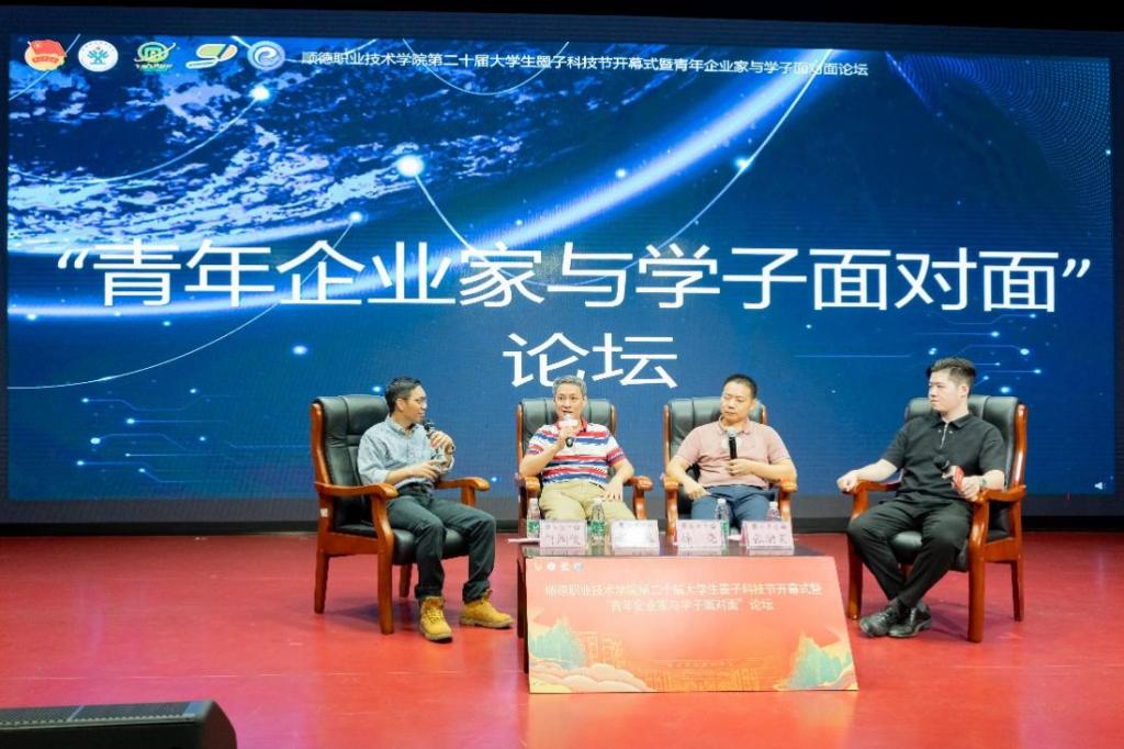 在青年企业家与学子面对面论坛上,来自腾讯、华为、科大讯飞的企业家代表通过现场访谈、互动问答等方式分享了自己的人生感悟,勉励同学们自力自强、勇担重任,让青春在创新创造中更加闪亮。同学们向企业家们踊跃提问,现场气氛热烈。