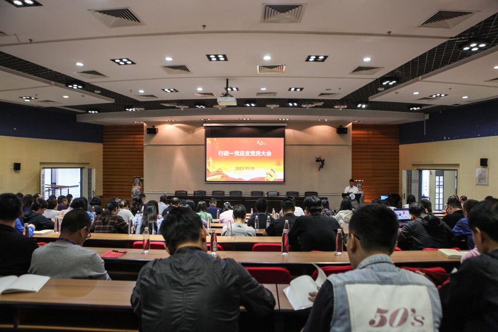 11月13日下午,行政一党总支在学术交流中心二号报告厅召开党员大会,党总支书记上专题党课。行政一党总支全体党员参加会议。