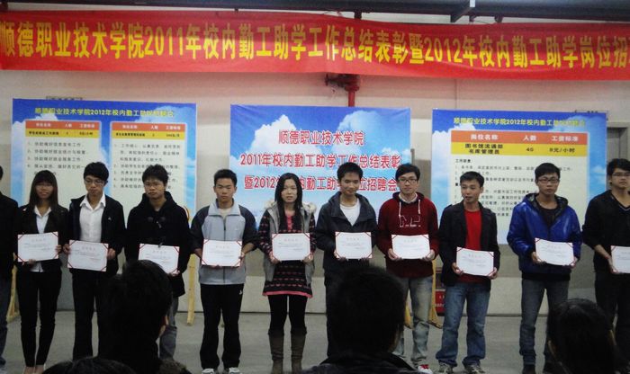 会上表彰了韦瑛等10名优秀指导老师、黄皎健等10名优秀学生和图书馆等5个先进集体。本次招聘会共为贫困生提供342个校内勤工助学固定岗位和645个临时岗位。