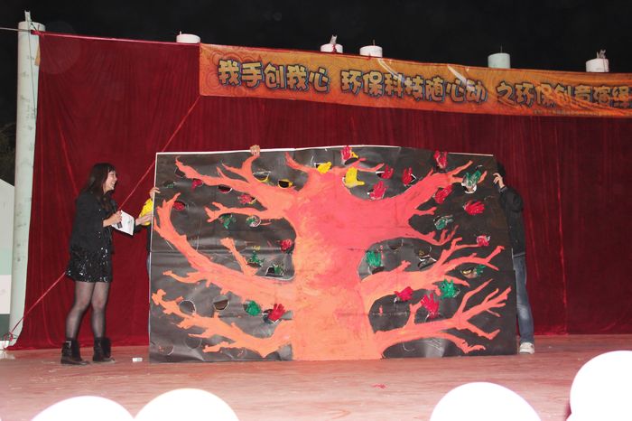12月13日晚上,由学生处、校团委主办,设计学院分团委承办的第八届大学生科技节之“我手创我心·环保科技随心动” 环保创意演绎大赛于露天舞台顺利举行,这是设计学院分团委继“动手达人”手工艺品制作比赛的另一个科技节活动项目。学生处、校团委、设计学院相关负责人和1000多名师生参加了本次活动。