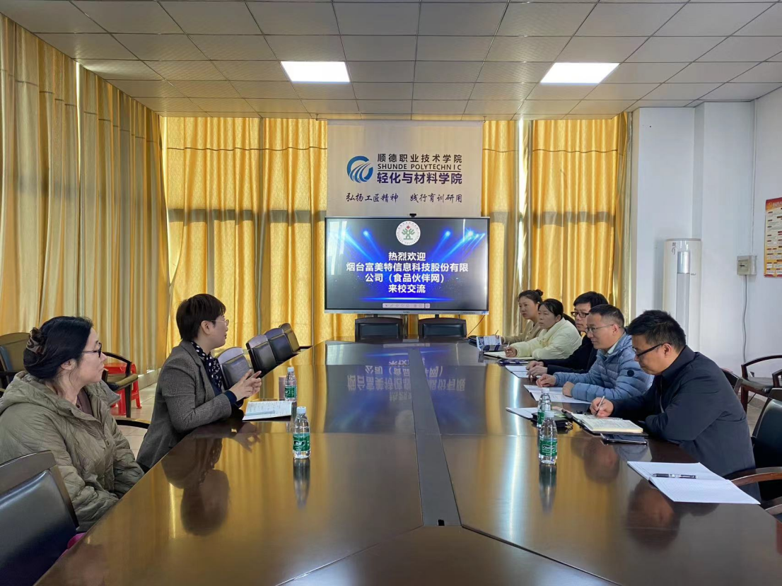 12月27日,烟台富美特信息科技有限公司(以下简称“食品伙伴网”)一行到永利官网调研交流。此次交流旨在加强双方在人才培养、课程建设、资源库建设、学生活动竞赛及协同育人等方面的合作,共同推动教育的创新与发展。
