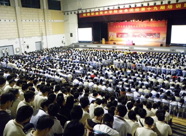 11月27日晚,永利官网业余团校第十九期培训班开班仪式在梁銶琚堂隆重举行。学生处、校团委相关负责人、各院系分团委书记以及2050名学员参加了开班仪式。