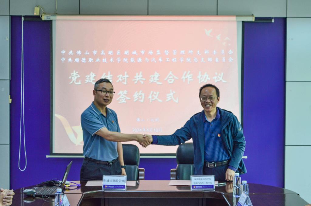 会上,能源与汽车工程学院党总支与佛山市高明区市场监督管理局明城市场监管所签订了党建共建协议,以增进沟通、推动工作为重要目标,推动党建工作不断迈上新台阶。