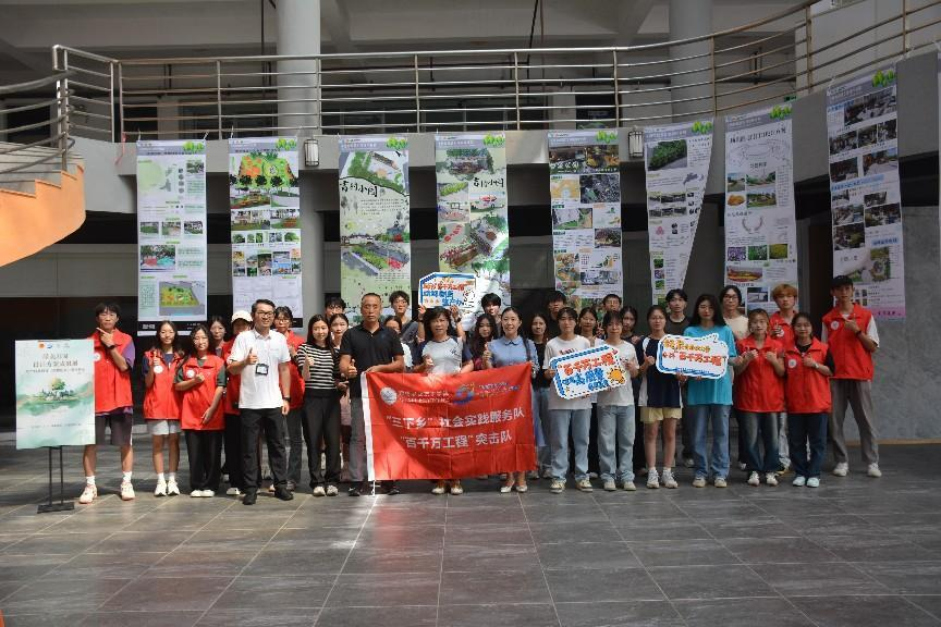 7月3日下午,设计学院“百千万工程”绿美苏岗实践团成果汇报展暨2022级园林技术专业《植物配置》课程作业展在艺术楼三楼中庭举行。苏岗社区党委副书记郭勇成、校团委书记刘锦鑫、设计学院相关负责人与园林技术专业师生现场观展,并围绕方案特色与后期落地可行性进行了探讨。