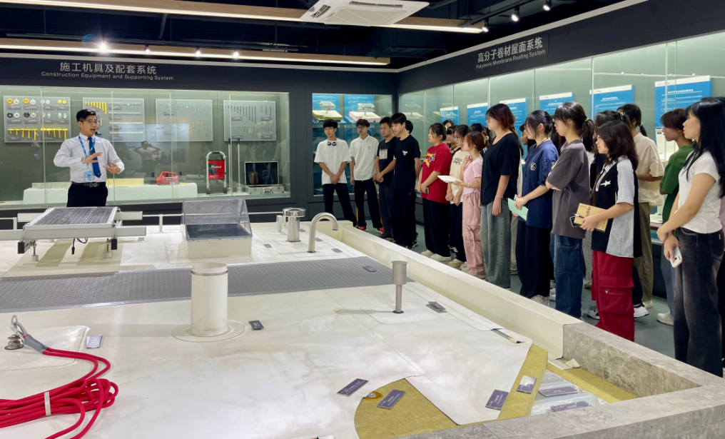 在科顺防水科技股份有限公司,企业负责人详细介绍了公司最新研发的环保型防水材料及其在行业中的应用前景,让师生们近距离感受到了科技创新的力量。在公司的产品展厅,师生们详细了解了防水材料的种类、性能及施工技术,进一步拓宽了专业视野。