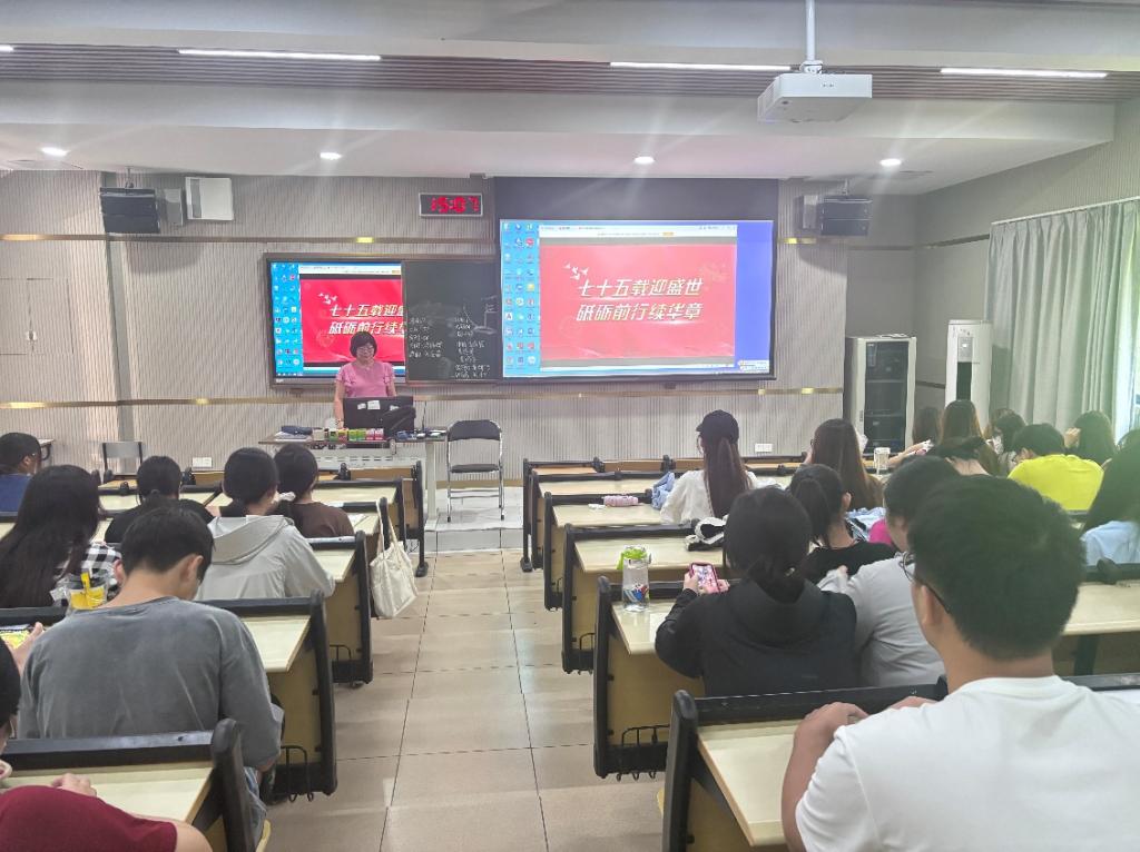 刘红以“七十五载迎盛世,砥砺前行续华章”为主题,结合翔实的数据和生动的案例,围绕政治建设稳步推进、文化传承与创新交相辉映、生活水平实现质的飞跃、环境建设成效显著四个方面向同学们展示了建国七十五年来我国取得的巨大成就,寄语同学们要弘扬爱国主义精神,在新时代的浪潮中勇立潮头,为祖国的繁荣富强贡献自己的力量。