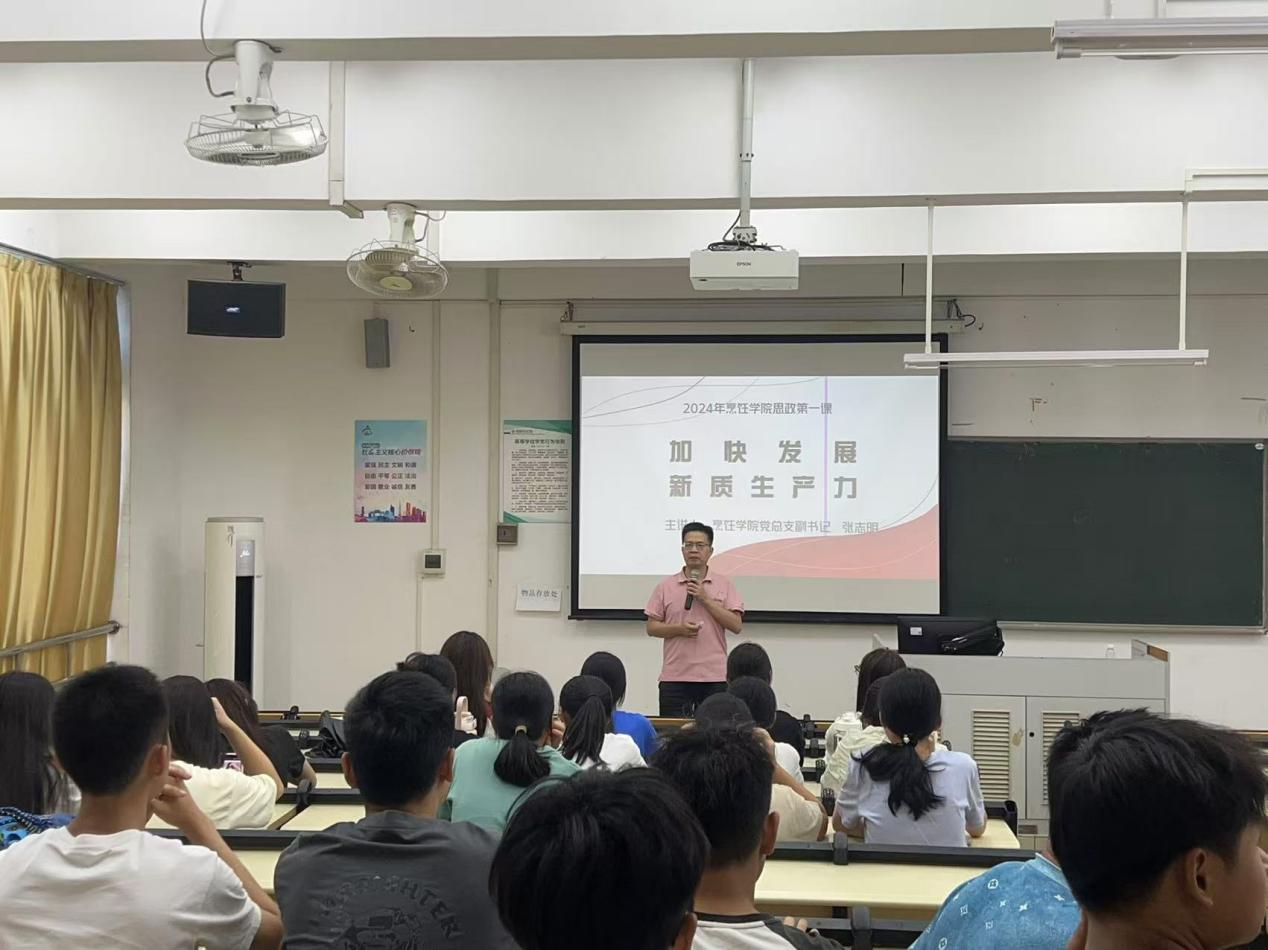 近日,烹饪学院党总支书记董国顺、副书记张志明(主持学院行政工作)分别给24级学生讲授“思政第一课”。