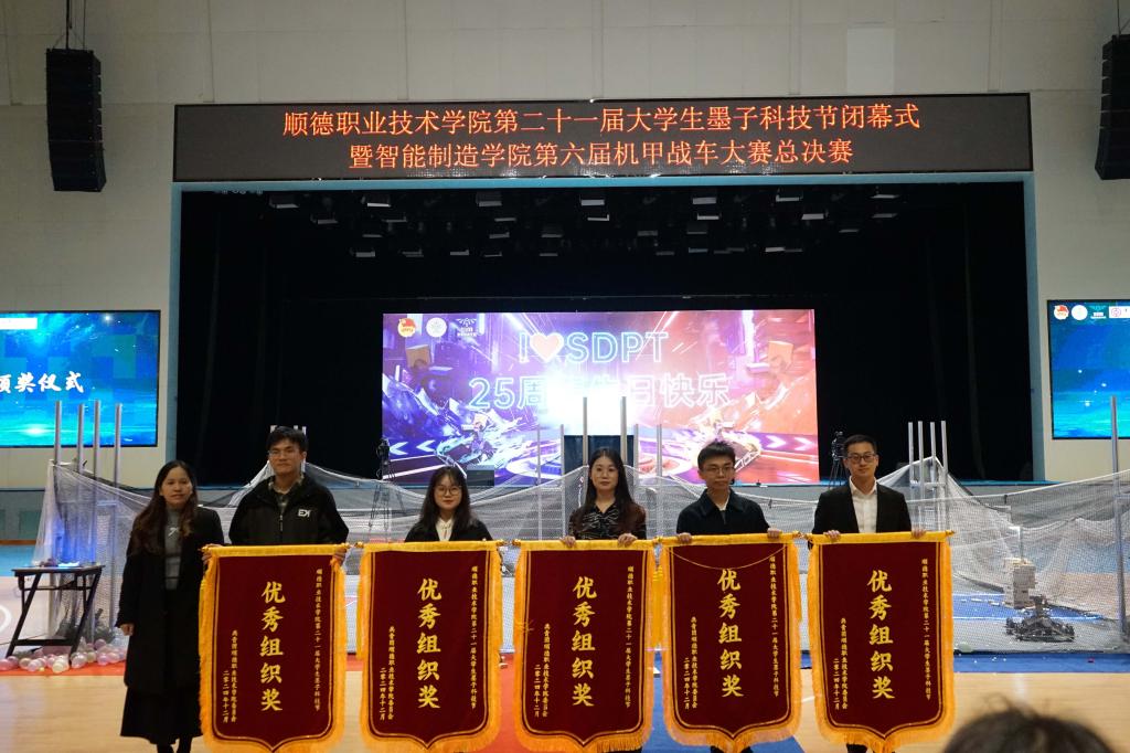 在表彰环节,商学院凭借在墨子科技节活动中的突出表现,获“匠心杯”,设计学院、人文学院、智能制造学院、烹饪学院、酒店与管理学院获“优秀组织奖”。