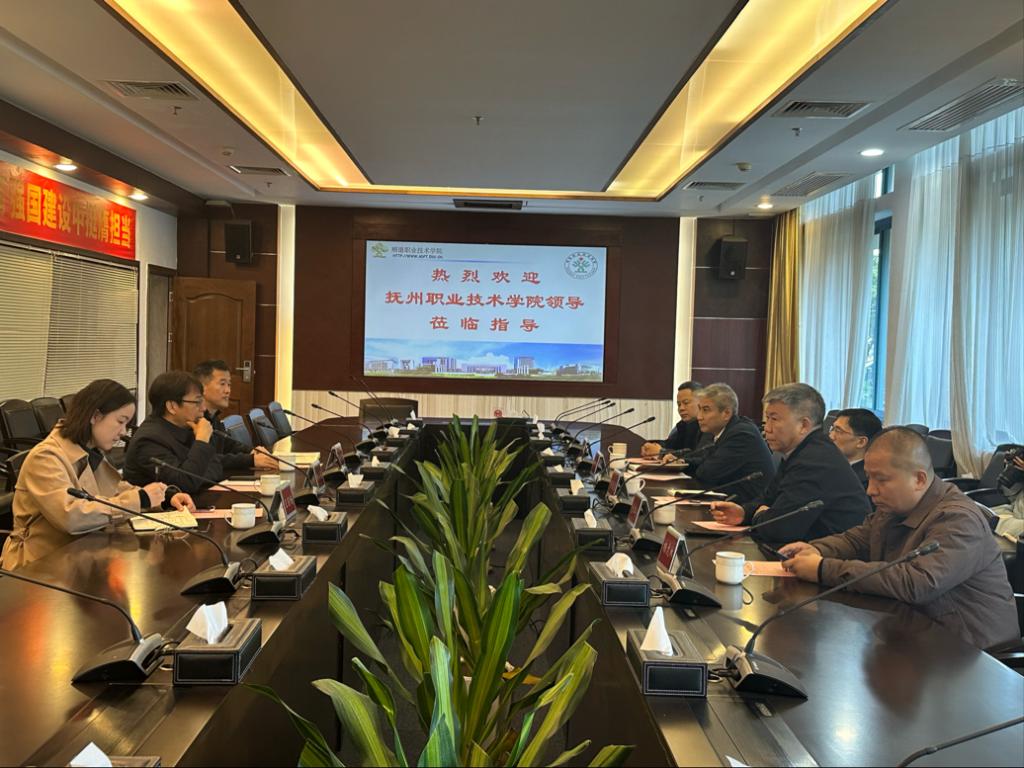 12月20日上午,抚州职业技术学院党委副书记、院长胡德勇一行到永利官网调研交流。学校党委委员、副校长杨小东,学校教务处、科技处相关负责人陪同调研。