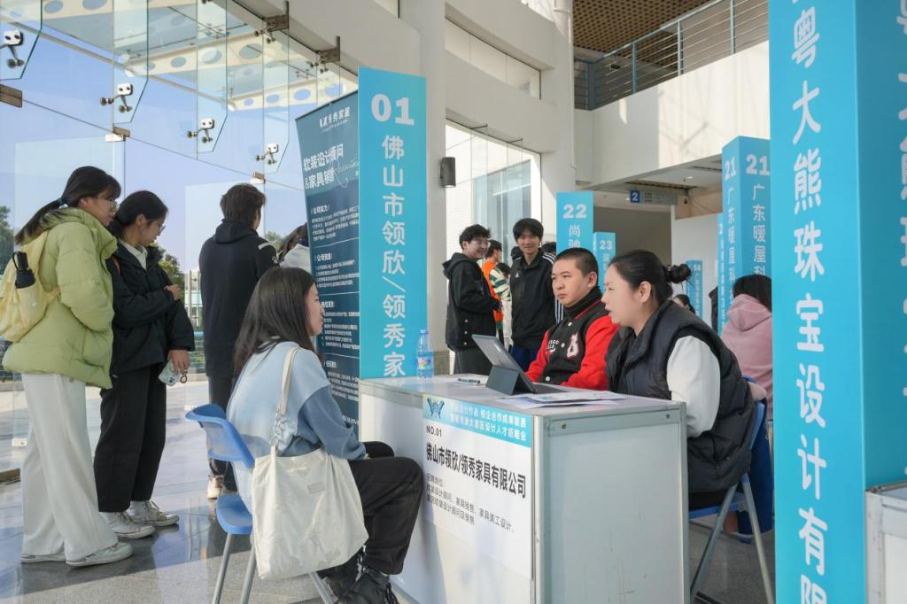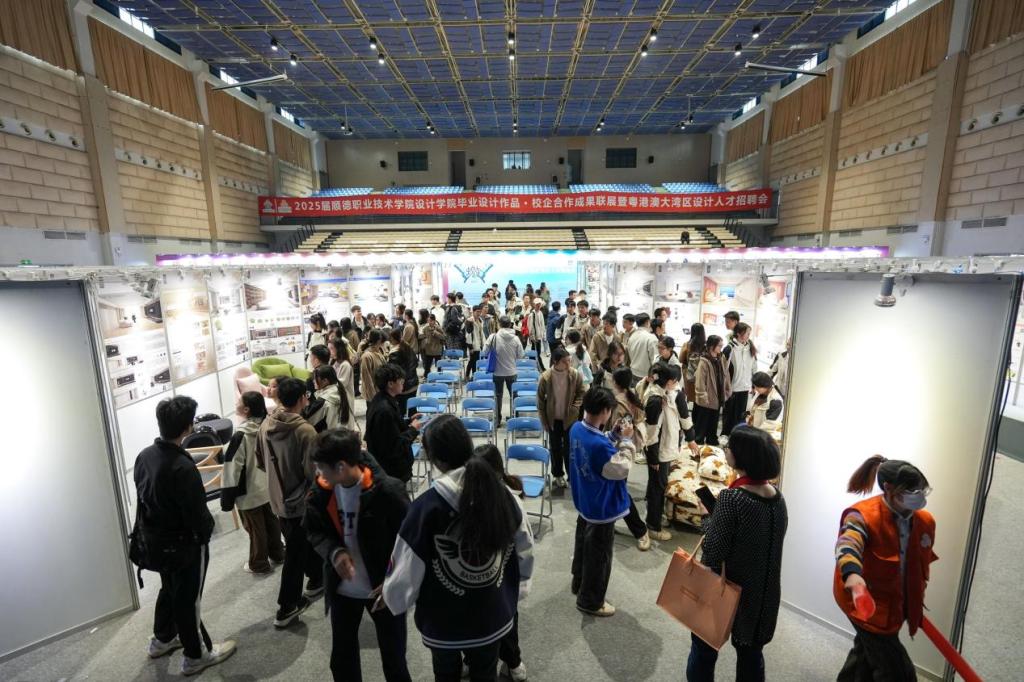 12月20日,2025届设计学院毕业设计作品·校企合作成果联展暨粤港澳大湾区设计人才招聘会落下帷幕,校院领导班子、各专业和行业代表、企业代表以及全校师生近万人现场观展。本次活动涵盖了3天展览,涉及9个专业领域,拥有130+现场招聘展位,展示了300+毕业设计作品,并在南方+、永利欢乐娱人城视频号、顺职设计学院视频号三大平台同步进行直播,收获了100000+直播间观看量。