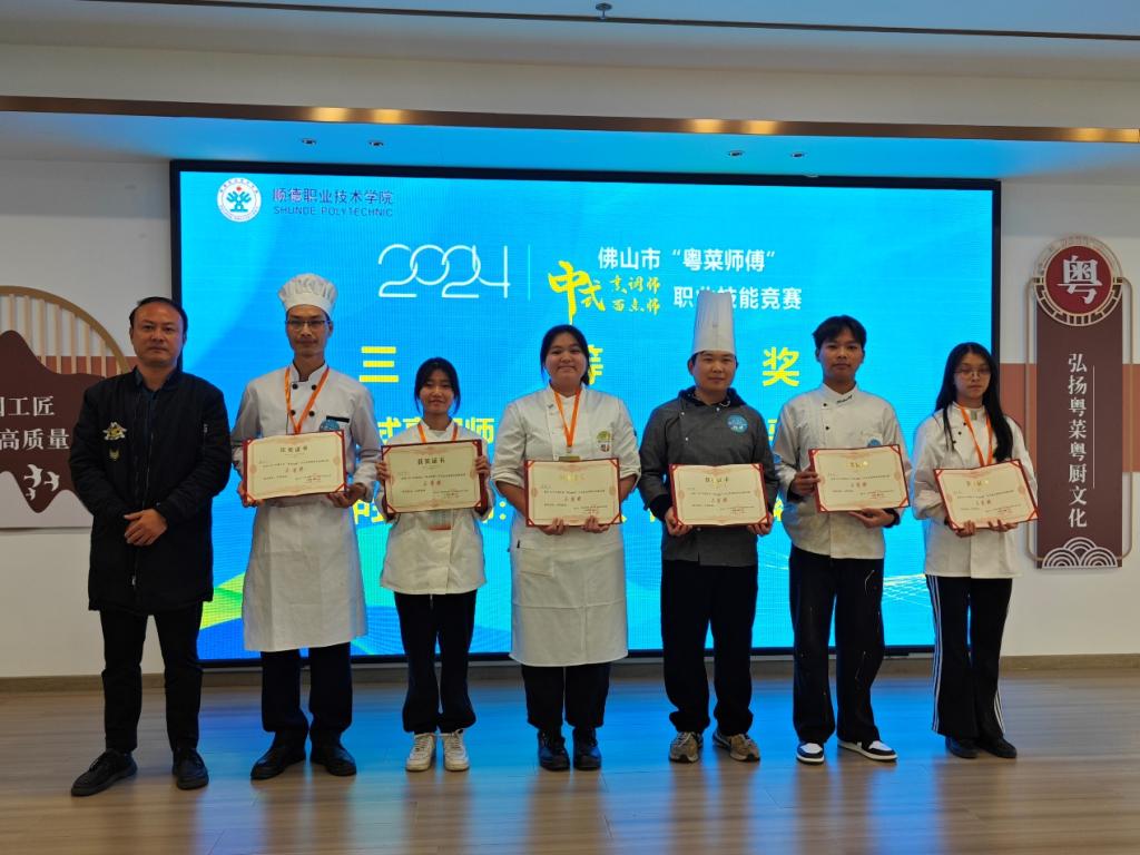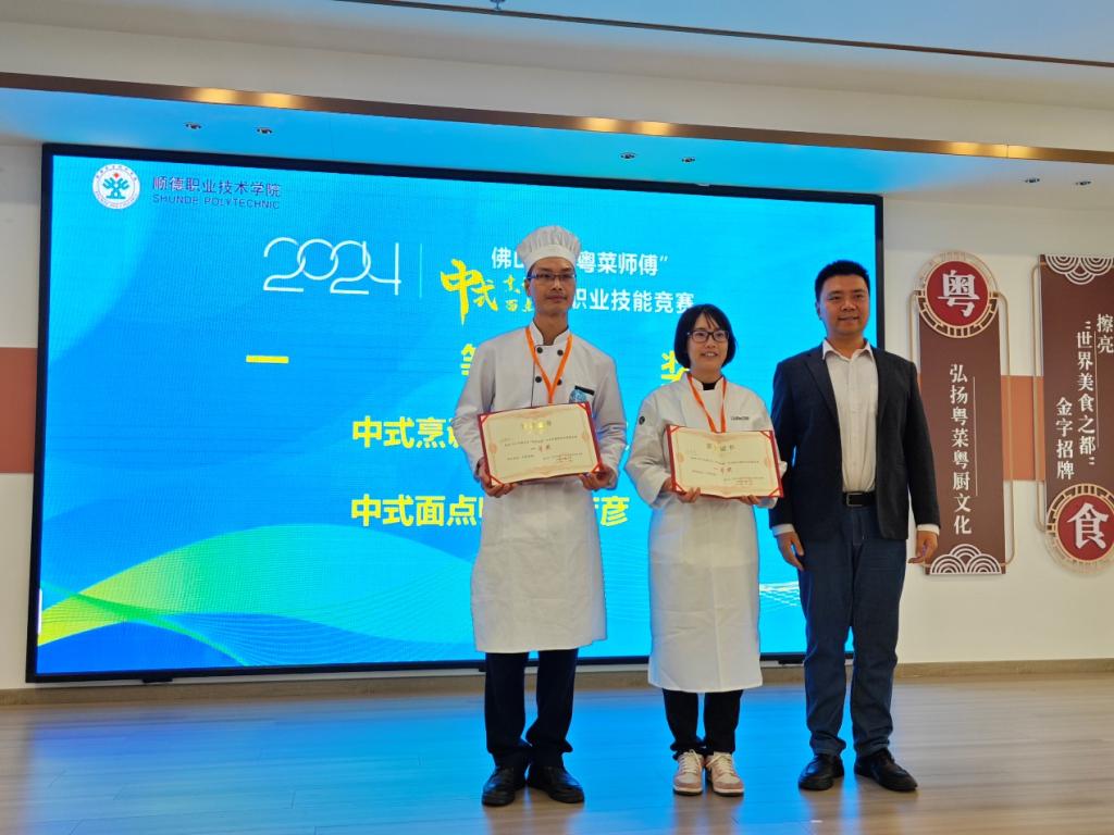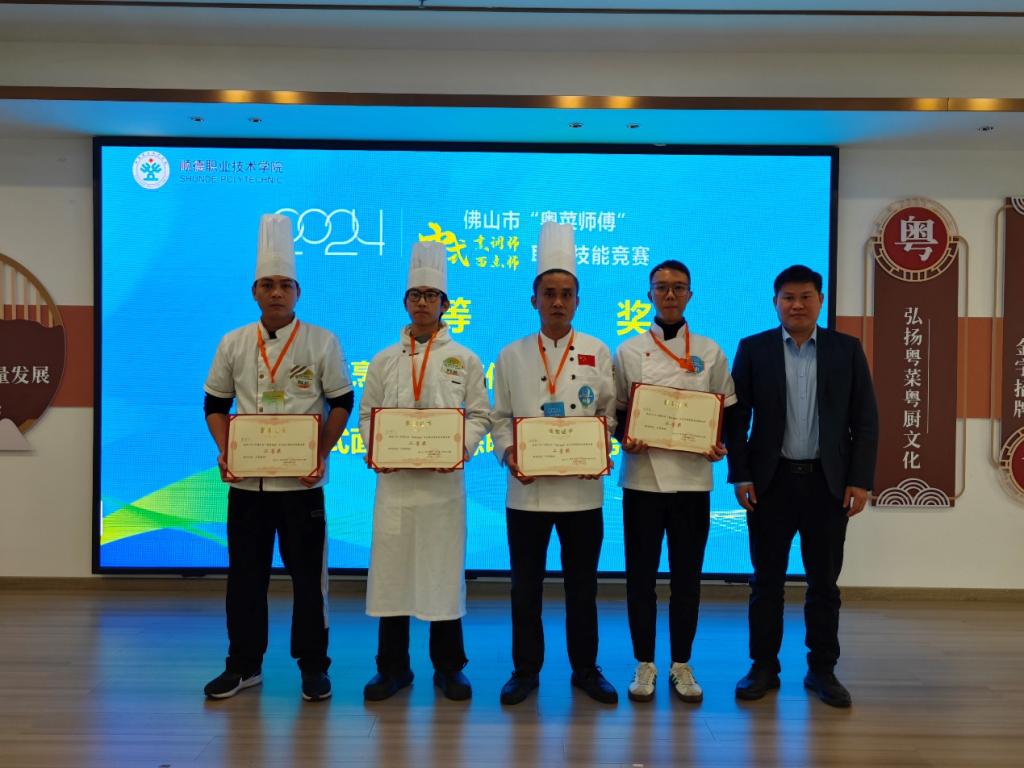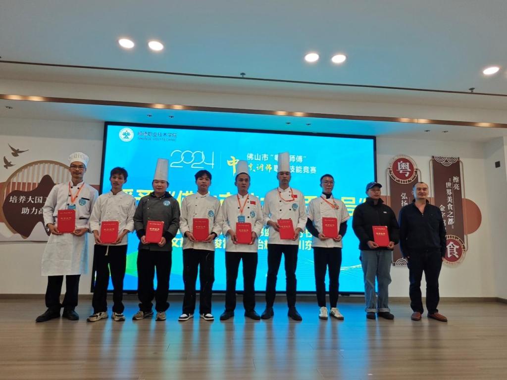 佛山市人力资源和社会保障局职业能力建设科科长曾凡滨,佛山市人力资源公共服务中心职业技能鉴定部副部长孟德谦、罗树文,顺德区民政和人力资源社会保障局副局长李蔚、技能鉴定中心林永明,永利官网烹饪学院相关负责人出席颁奖仪式。