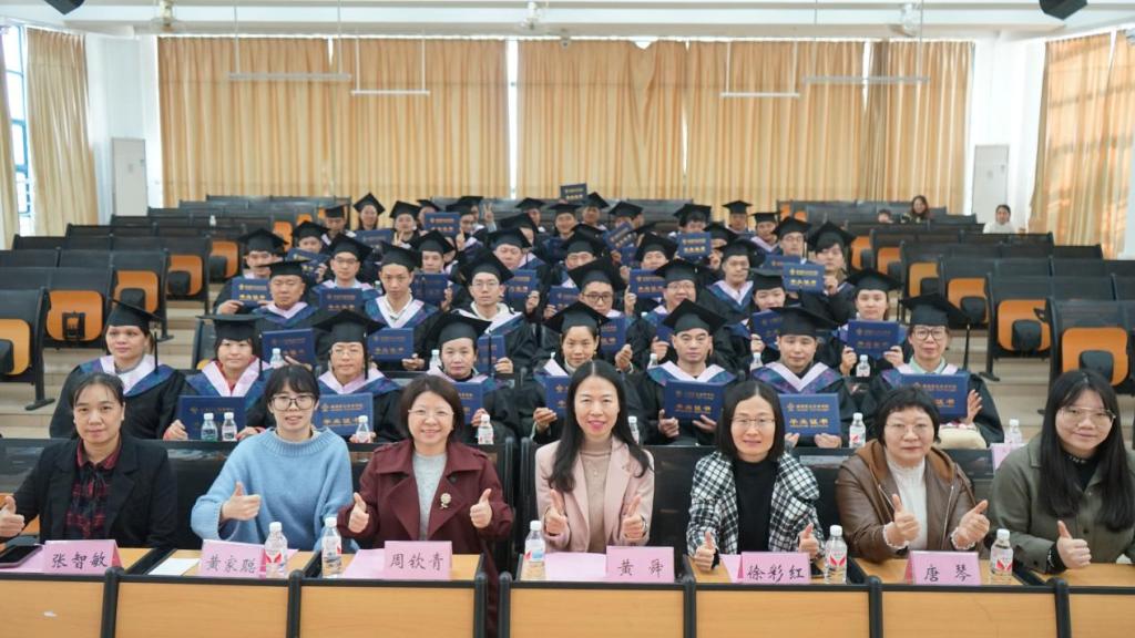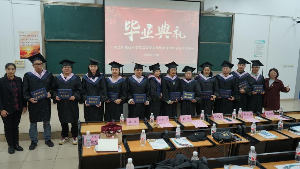1月19日上午,永利官网高等学历继续教育2025届企业班毕业典礼1号教学楼200室举行。广东伊之密股份有限公司压铸机事业部总经办经理黄舜、广东奥特龙电器制造有限公司人力资源部培训专员黄家聪,继续教育学院副院长周钦青及学院相关老师,2025届企业班全体毕业生参加典礼。典礼由继续教育学院教师唐琴主持。