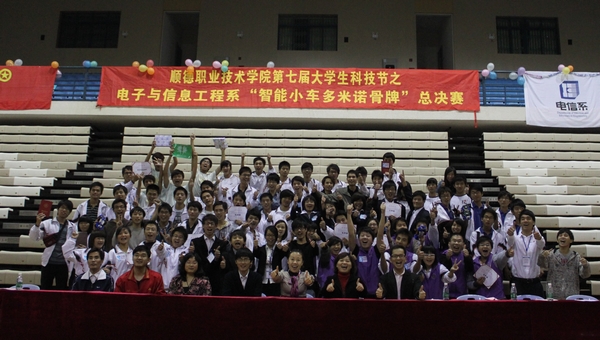 12月22日晚,由学生处、校团委主办、电子与信息工程系分团委承办的第七届大学生科技节之“智能小车推动多米诺骨牌大赛”总决赛在梁銶琚礼堂圆满落幕,为冬至日在校的师生带来了一场科技竞技与视觉感官大餐。学生处、校团委、电信系部分老师和全校学生代表800多人观看了比赛。最后来自电子与信息工程系、机电工程系等部门的参赛队伍分别获得一、二、三等奖,本次比赛还评选出优胜奖、最佳骨牌创意设计造型奖和最佳团队奖等若干奖项。