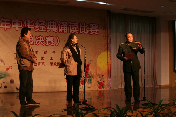 12月24日下午,由永利官网党委宣传部主办,学生处、工会、人文教育系、思想政治理论课部协办的“2010中华经典诵读比赛”总决赛在行政楼九楼教工活动中心隆重举行。校领导陈智、何锐连、邹时智、谭谦章和师生代表观看了比赛。广东省著名表演艺术家高侠、李仁义、林波担任本次大赛评委。