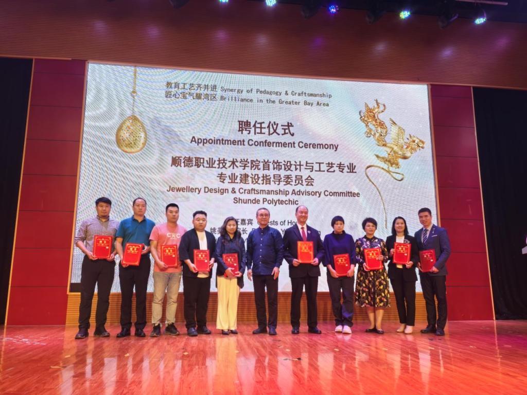 4月26日,由广东省珠宝行业相关机构主办的“教育工艺齐并进·匠心宝气耀湾区”主题分享会在佛山顺德伦教街道举行。现场还举行了首饰设计与工艺专业建设指导委员会聘任仪式。永利官网设计学院院长姚美康、首饰设计与工艺专业负责人黄嘉琳带领专业教师团队参加活动。