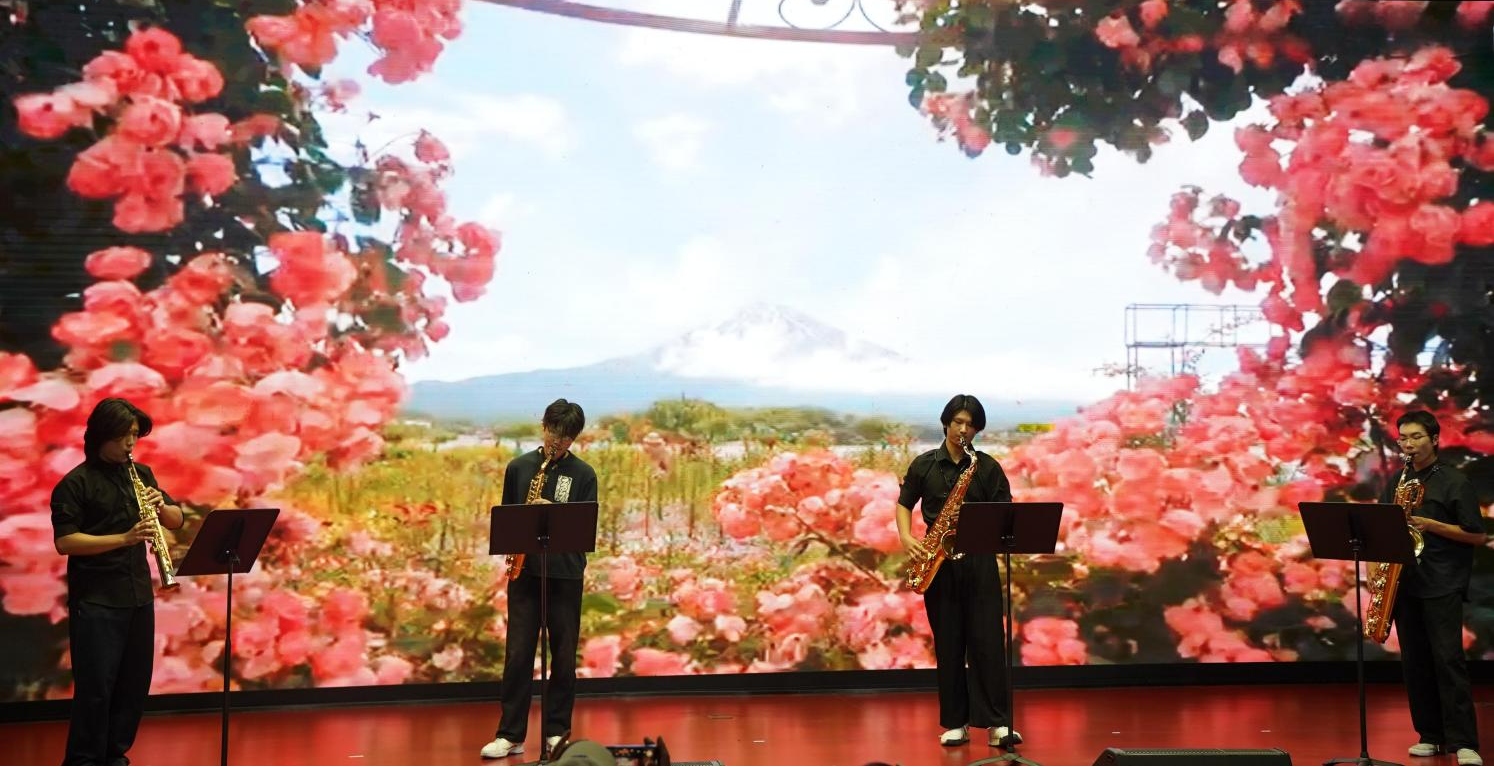 比赛现场,校管乐团还为大赛带来高水准的音乐演出。萨克斯管四重奏表演成员精湛的技艺和默契的配合,充分体现了学校艺术教育的丰硕成果。