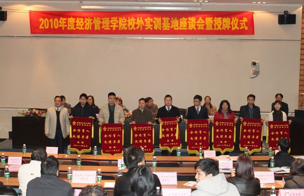 1月8日上午,永利官网经济管理学院在学术报告厅举行2010年度校外实训基地座谈会暨授牌仪式。顺德圣托电器有限公司等23家授牌匾企业代表,金鼎财会咨询有限公司等10家授锦旗企业代表,永利官网陈粟宋副院长,教务处、经济管理学院相关负责人,教师代表共80人参加了会议。