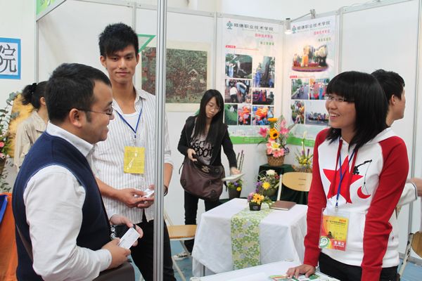 由08级学生自己设计的展位,展出了学生在校两年学习的成果,引来许多大型园林公司的青睐与驻足。现场的热闹景象还吸引了南方电视台智赢天下节目组记者的目光,他们专门对园林技术专业的参展目的及今后的办学设想进行了采访。华南植物园、珠海农科中心、汕头农科中心、海南博大兰花科技公司,花之星,广州百草园种业有限公司等三十多家知名园林单位与永利官网园林技术专业(花卉方向)达成的就业意向岗位超过了2011年毕业生人数,岗位类型主要有植物配置、园林施工、生产管理、花卉营销。08级园林技术(花卉方向)共有学生41人,是该方向的首届毕业生,良好的就业开端是他们成功走向社会的关键一步!