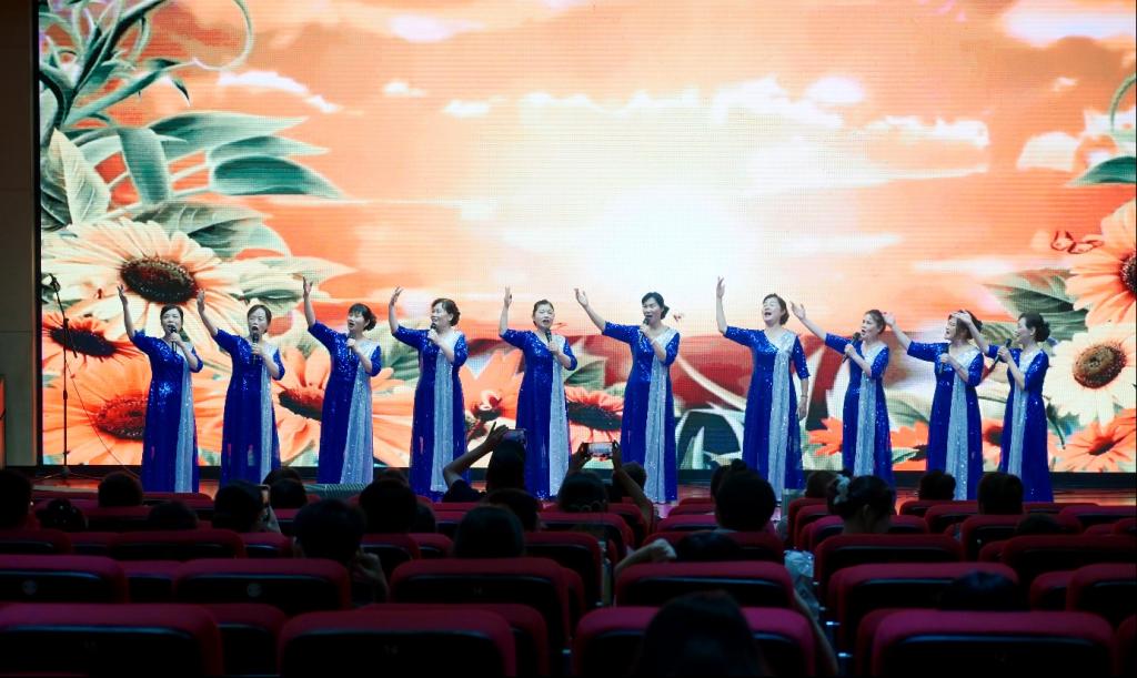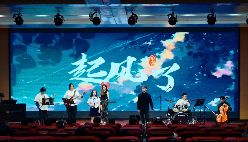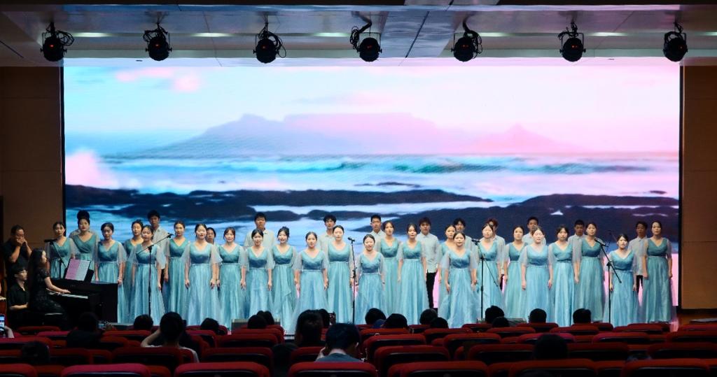 活动以青春洋溢的《起风了》奏响序章,激昂的旋律瞬间点燃全场热情;凤岭老年大学的银发歌者们以《田野静悄悄》诉说岁月静好,用歌声诠释艺术的永恒魅力。学校合唱团带来的《向云端》与《世界赠与我》,纯净和声如天籁绕梁;男声独唱《三峡情》将家国情怀融入每一个音符,引发全场共鸣。学校学生艺术团的萨克斯四重奏以《表演者》的灵动与《沿着社会主义大道奔前方》的豪迈,展现中西音乐交融之美。《琵琶行》的古韵新声、《青春》的铿锵诵读、架子鼓《山海》的震撼节奏,共同编织出多元艺术的华彩篇章。郑海曙老师以一曲《如愿》,凤岭老年大学学员肖克讯、樊小红以一曲《最美的歌献给妈妈》,将对教育事业的美好期许化作温暖声浪,久久回荡在礼堂上空。