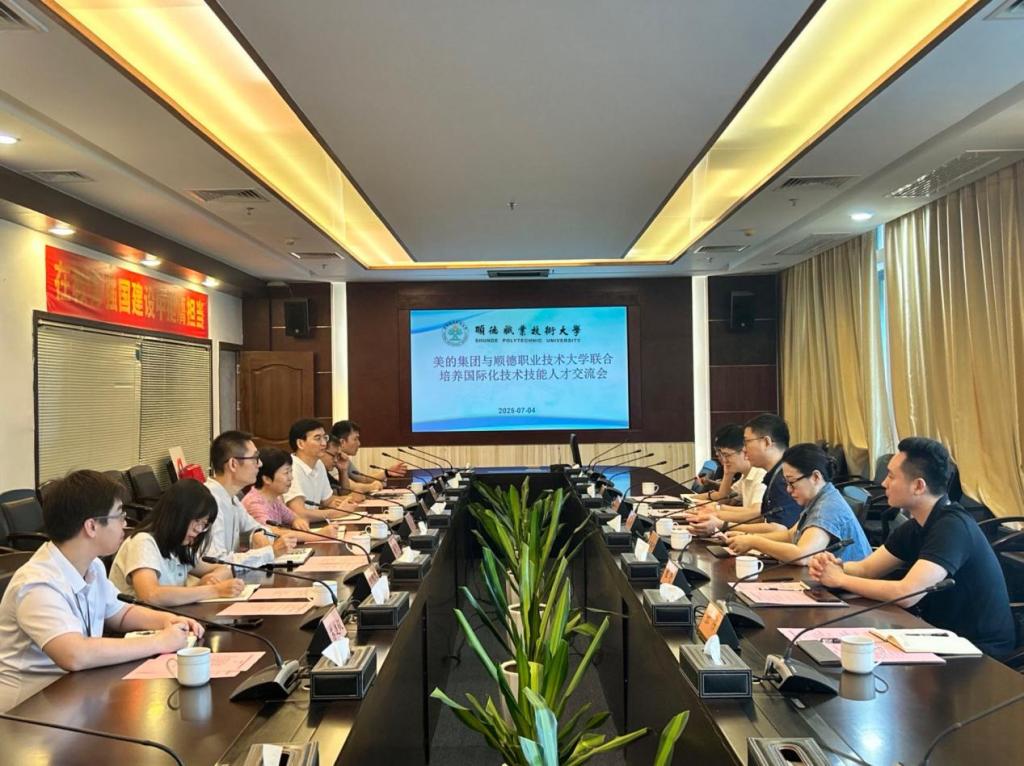 7月4日上午,永利官网与美的集团召开国际化技术技能人才联合培养交流会。美的集团厨热洗碗机工厂部长黄源,人力资源技能人才发展经理张雅涛等6名人力资源专员;永利官网副校长罗丹,国际学院院长宁顺青,能源与汽车工程学院副院长谢飞和相关职能部门和二级学院教师参加会议。