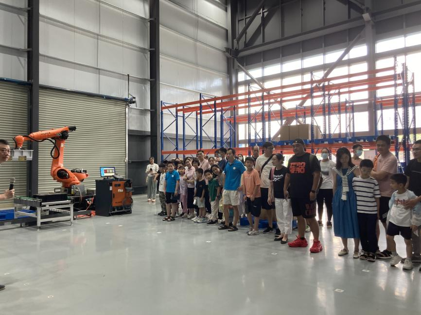 在智能仓储区,AGV机器人宛如训练有素的“物流小能手”,凭借高精度定位系统,在货架间灵活穿梭,精准完成入库、运输等一系列操作。孩子们目不转睛地盯着AGV机器人的运行轨迹,惊叹于智慧物流为工业生产带来的高效与便捷。