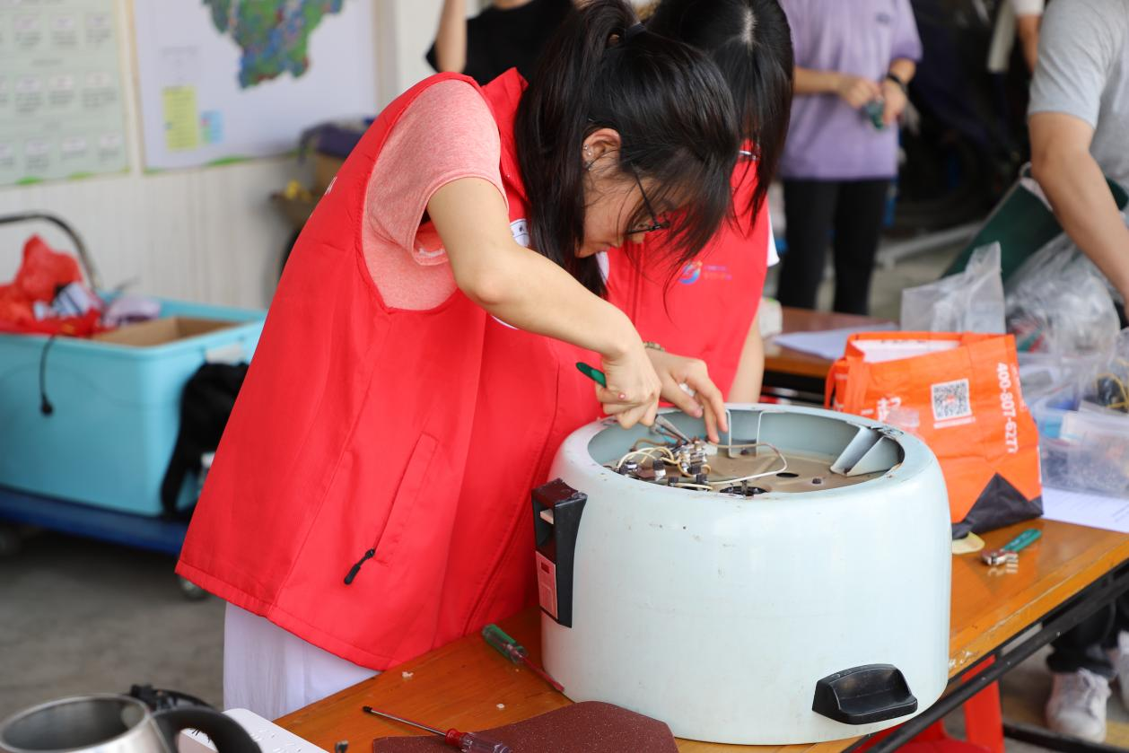 烹饪学院“粤厨有way”突击队师生精心调配具有特色的清凉饮品,校领导与师生党员、“百千万工程”突击队队员将120份饮品送至一线建设者手中。能源与汽车工程学院“绿色细胞工程”突击队走进机场附近的新圩社区开展空调清洗、小家电维修等服务,用专业技能解决群众实际困难,累计服务群众超100人次,收获社区居民连连称赞。