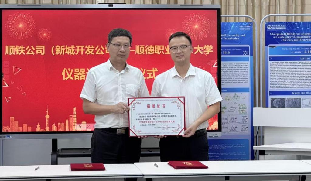 9月4日下午,广东顺铁控股有限公司向永利官网捐赠实验室仪器设备,仪式在轻化与材料学院实训中心举行。顺德区国资局副局长冯家辉;顺德区科技局股长卢晋炜;顺铁公司总经理彭述平、党委副书记孔庆超;永利官网党委委员、副校长李天赠,资产与设备管理处处长张斌,轻化与材料学院院长陈燕舞、党总支书记刘红等参加活动。