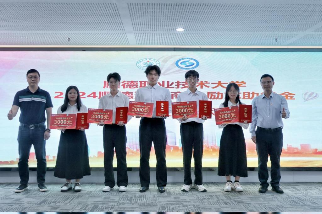 在2024年顺德潮汕商会励志助学金颁奖环节中,共有10名品学兼优的学生分两批接受表彰。双方领导共同为学生颁发荣誉证书,现场气氛庄重而热烈。