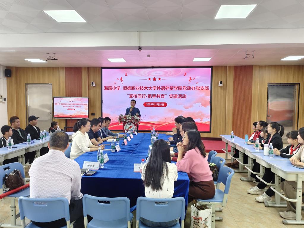 在海尾小学开展的“家校同行·携手共育”党建活动中,4位党员教师与8个社区家庭结成帮扶对子,传播科学的教育理念和方法,助力社区家长化解育儿难题,提升家庭教育质量,促进社区儿童健康成长。海尾小学校长陈翠、副校长高宇对学院此次创新党建活动寄语充分肯定,对顺德基础教育研究等项目提出合作需求。宁顺青表示,学院将坚守初心,充分发挥自身专业优势,不断向社区基础教育单位输送优质高等教育理念和资源,为地区教育发展做出实实在在的贡献。