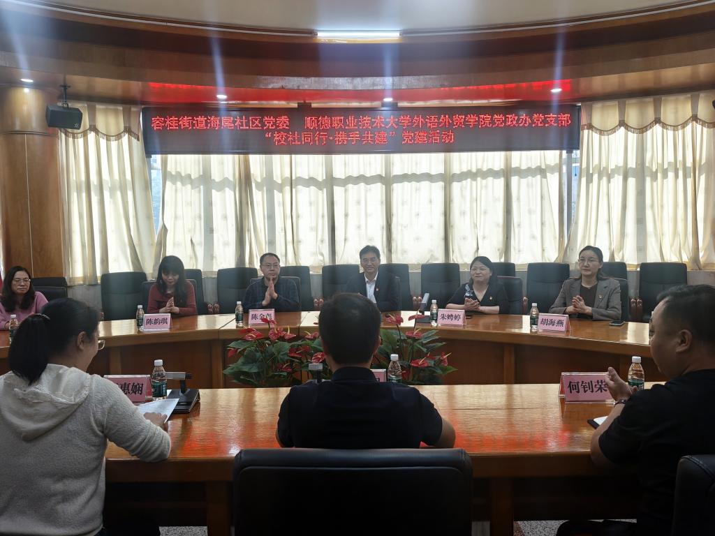 11月5日,外语外贸学院学院党政办党支部组织党员前往顺德区容桂街道海尾社区,开展“我为群众办实事”之“二结二同二共”党建活动,分别与海尾社区党委、海尾小学开展党建共建,与基层社区共绘教育高质量发展新画卷。外语外贸学院党总支书记宁顺青参加活动。