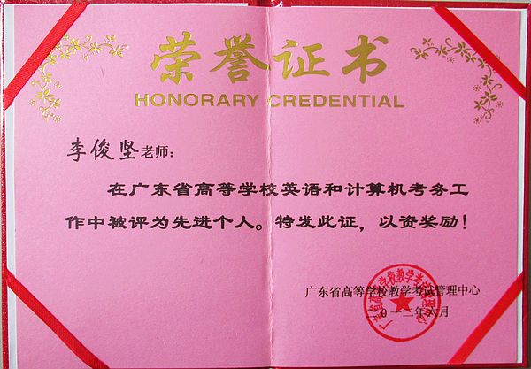 本次获奖评选公平公开,根据省教育厅相关评选量化标准进行,在全省169所高校中,共评出30所院校为先进集体单位,24人为先进考务工作者。永利官网荣获先进集体称号,李俊坚老师荣获先进个人的光荣称号。永利官网作为多年全省英语应用能力和计算机考试考点,在英语、计算机等教学、考试改革中,组织工作井然有序、积极主动,紧密配合全省的考试管理建设,贡献突出。李俊坚同志多年来从事考务管理工作,务实创新,锐意进取。