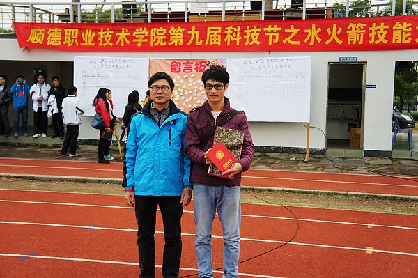 12月5日的决赛在雨后美丽的学校运动场举行,参加人员有学生处、校团委、机电工程系党总支书记以及相关老师。决赛飞行分10组进行,每组3个,发令员一声令下,三支形态各异的水火箭凌空飞行,上演了一幕顺职水火箭style,赢来现场观众的阵阵掌声和欢呼声。紧接而来的是大赛与现场观众的互动环节----“顺职非常6+1砸金蛋”活动,观众的积极参与把现场气氛一次次推向高潮。最后,经过一轮轮的飞行决战,来自机电系的“飞得起”号凭借精致的外形、成功的二级推进技巧获荣获一等奖以及“最佳创意”奖,来自电信系、机电系的“小小穿梭机号”、“等一下号”获得二等奖,“飞翔号”、“第一次号”、“一飞冲天号”获得三等奖。