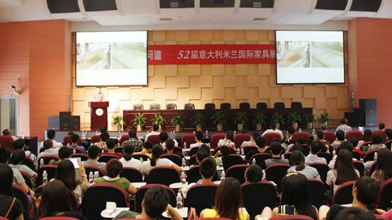 5月17日米兰·问道——52届意大利米兰国际家具展专题报告会在学术交流中心举行。设计学院孙亮教授、优越豪庭家具有限公司陈浩然总裁、世纪亚太家私有限公司梁洛文总监以各自的视角,就代表国际一流设计和制造水平的米兰家具展及米兰设计周的观展体会和思考做了精彩演讲。报告会由设计学院相关负责人主持,来自珠三角地区的企业家、设计师以及设计学院师生近500人参加了报告会。